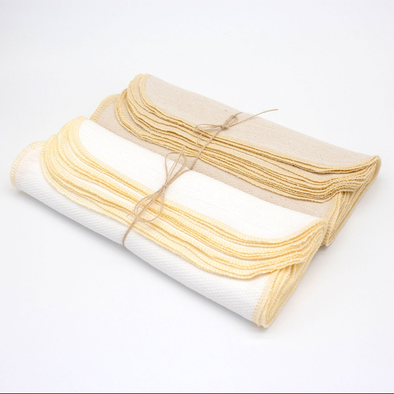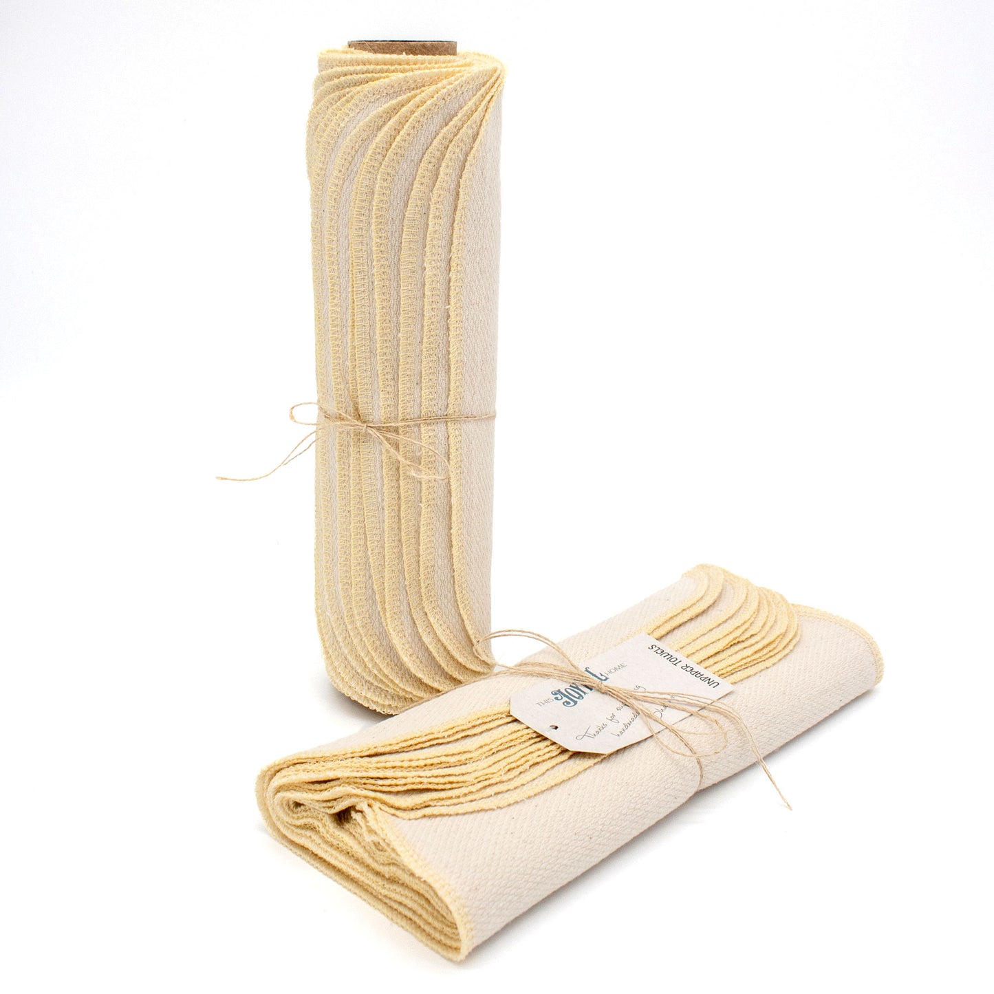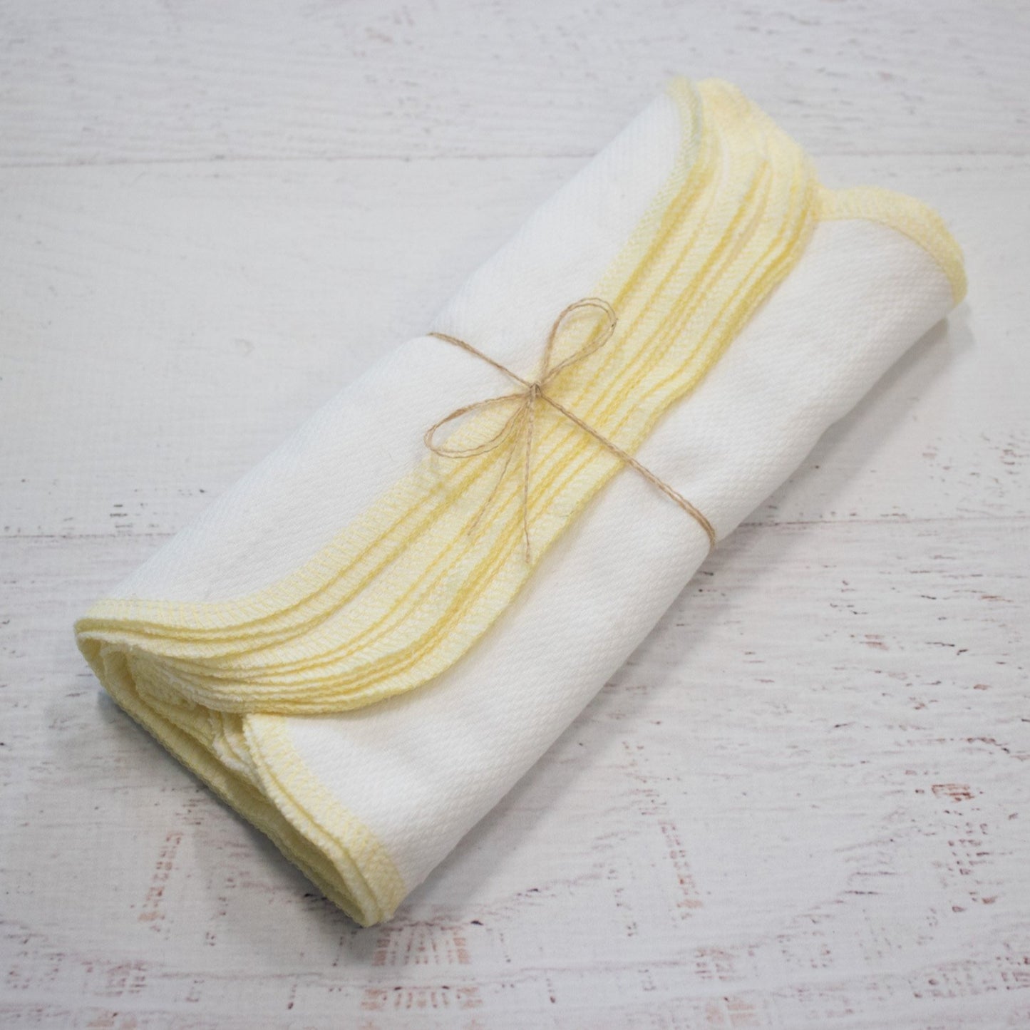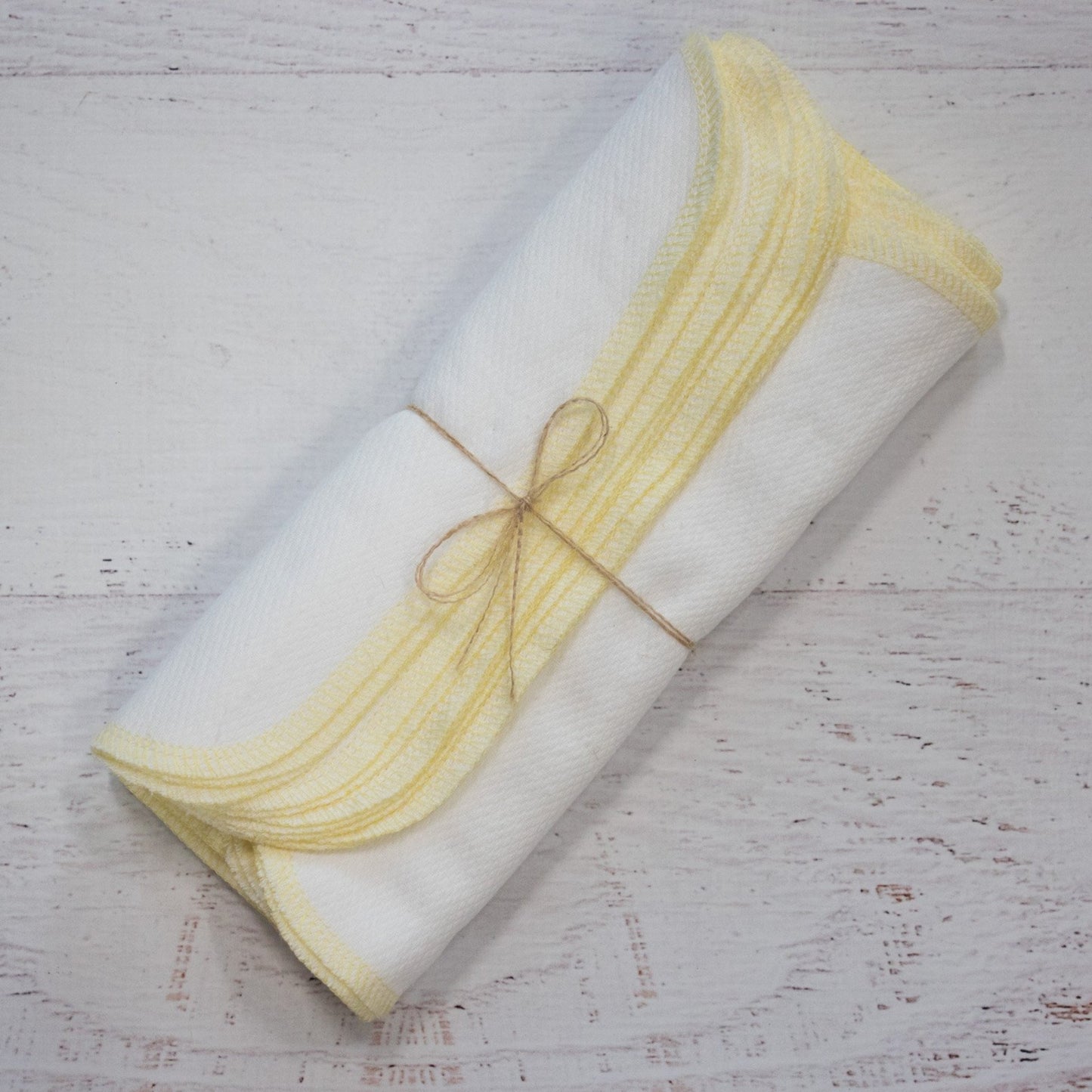 Toss the paper towels for the last time! Convert your kitchen to a better alternative with this set of 10”x10” paper towel replacements made with a single layer of birdseye cotton. Birdseye is a lightweight weave that make these cloth great as napkins or for daily clean up. Birdseye is absorbent without being overly heavy.