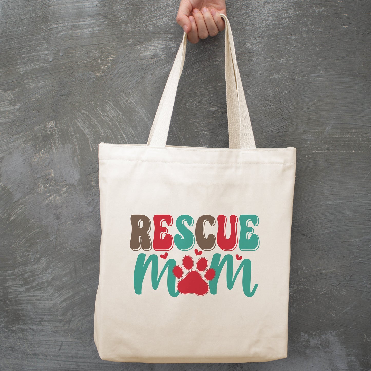 Looking to show your passion for supporting shelter and rescue pets? Our Rescue Mom Canvas Tote Bag is the perfect accessory! Featuring eye-catching red and teal graphics, this premium tote not only makes a statement but also contributes to environmental conservation.