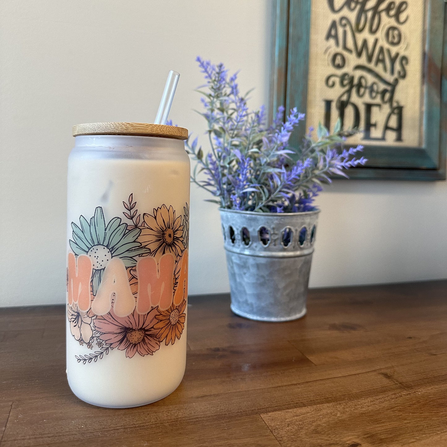 We only use the highest quality, premium materials, and our glass cups are no exception. We print with a high tech, sublimation process so the print is IN the material, not on top of it. This means there's no plastic-y heat transfer vinyl to have to worry about peeling off! This 18 oz glass tumbler features frosted glass. Please hand wash with care as the surface can scratch.