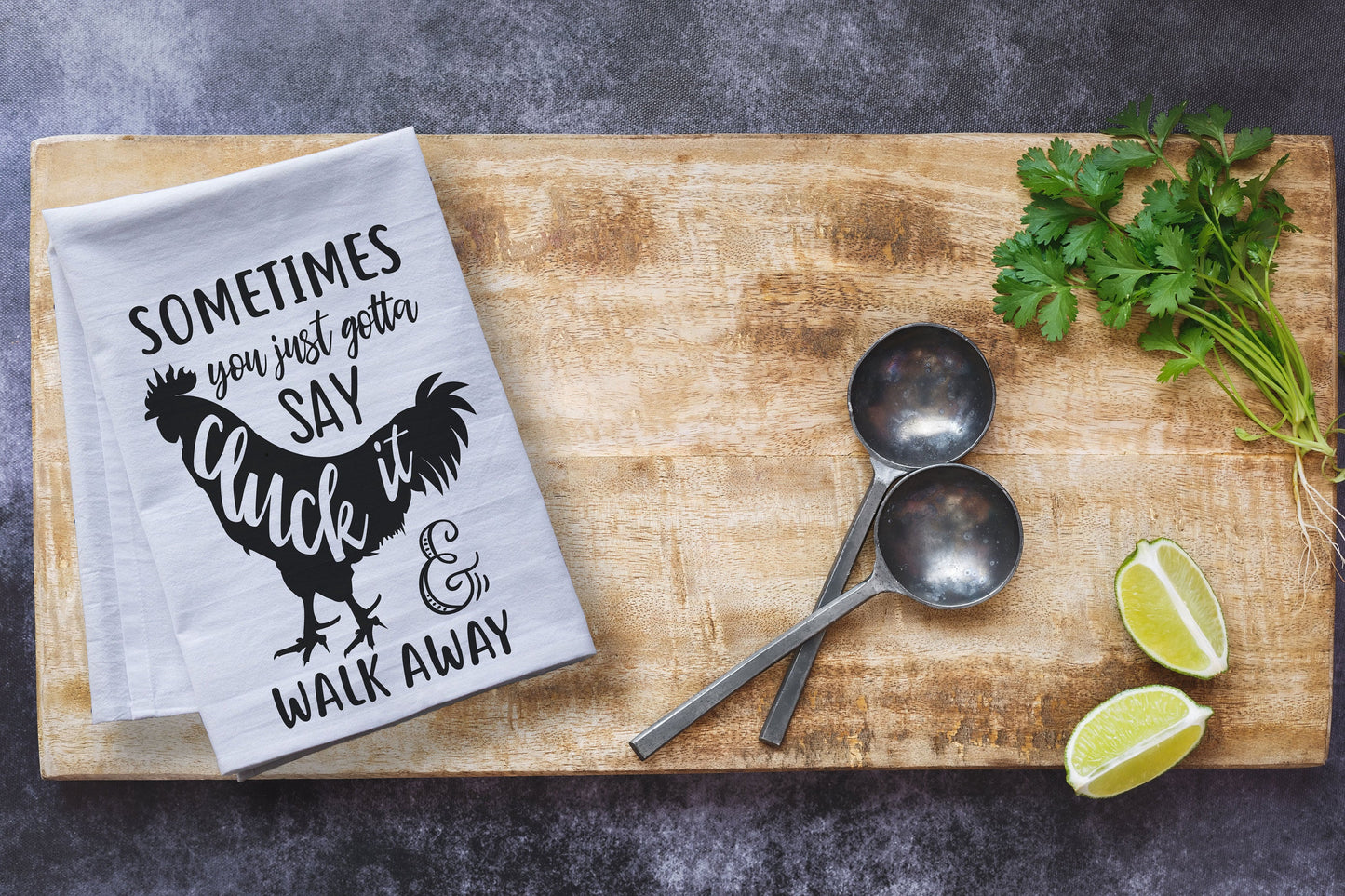 Spice up your kitchen with this farm style, life advice tea towel! Sometimes you just have to say cluck it and walk away!