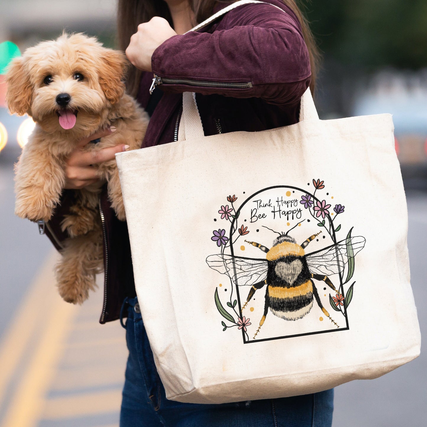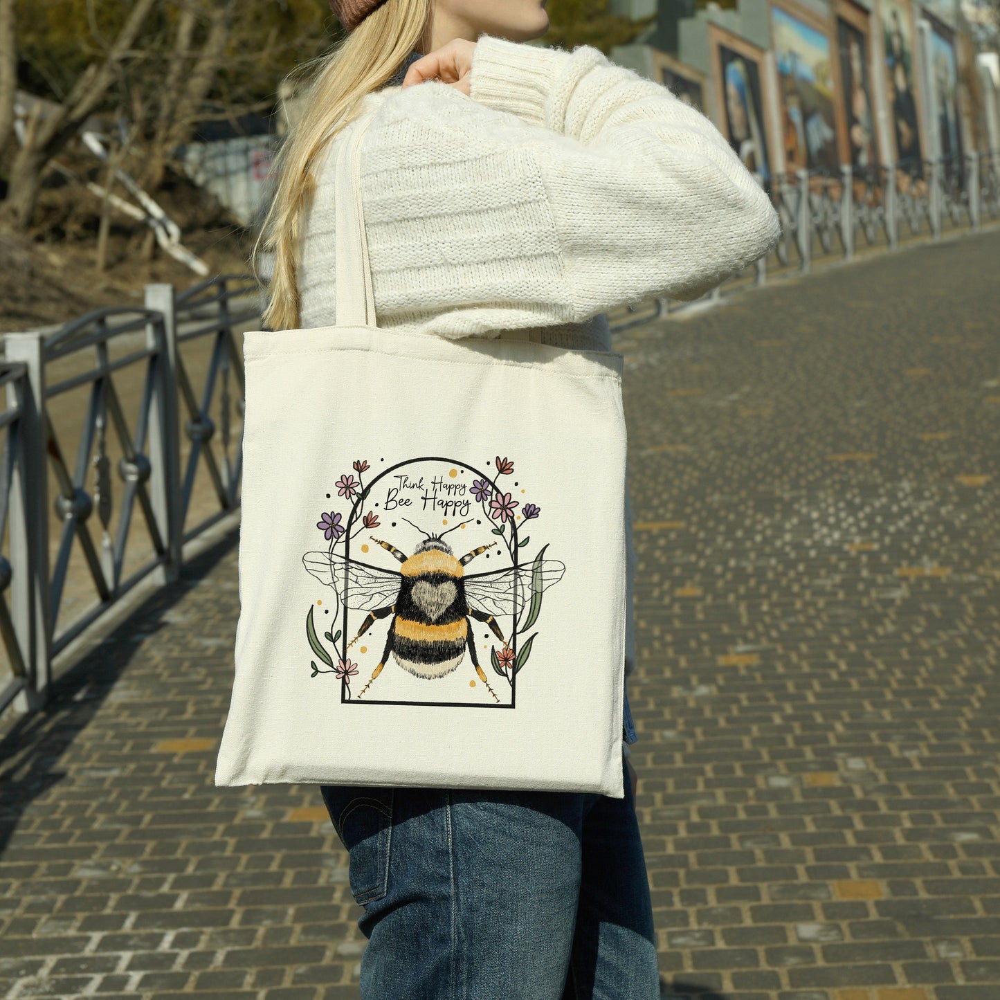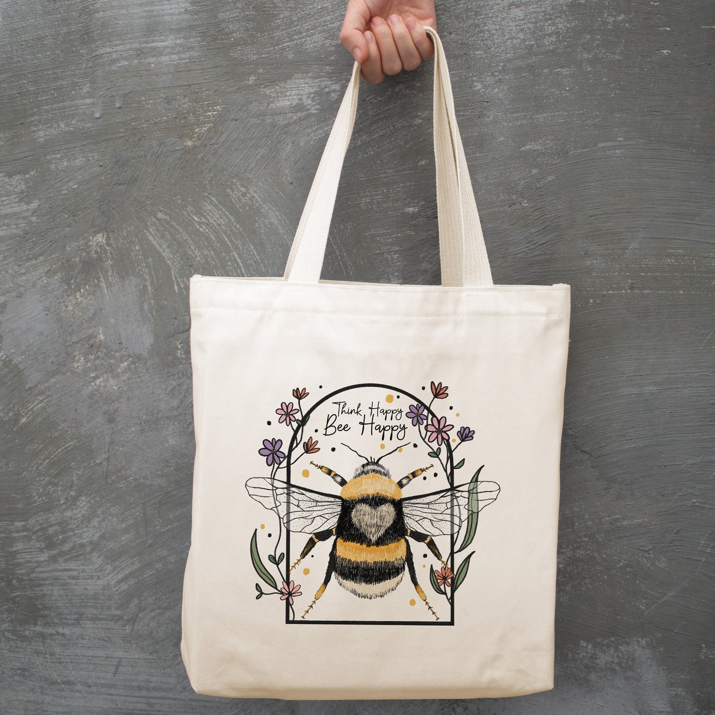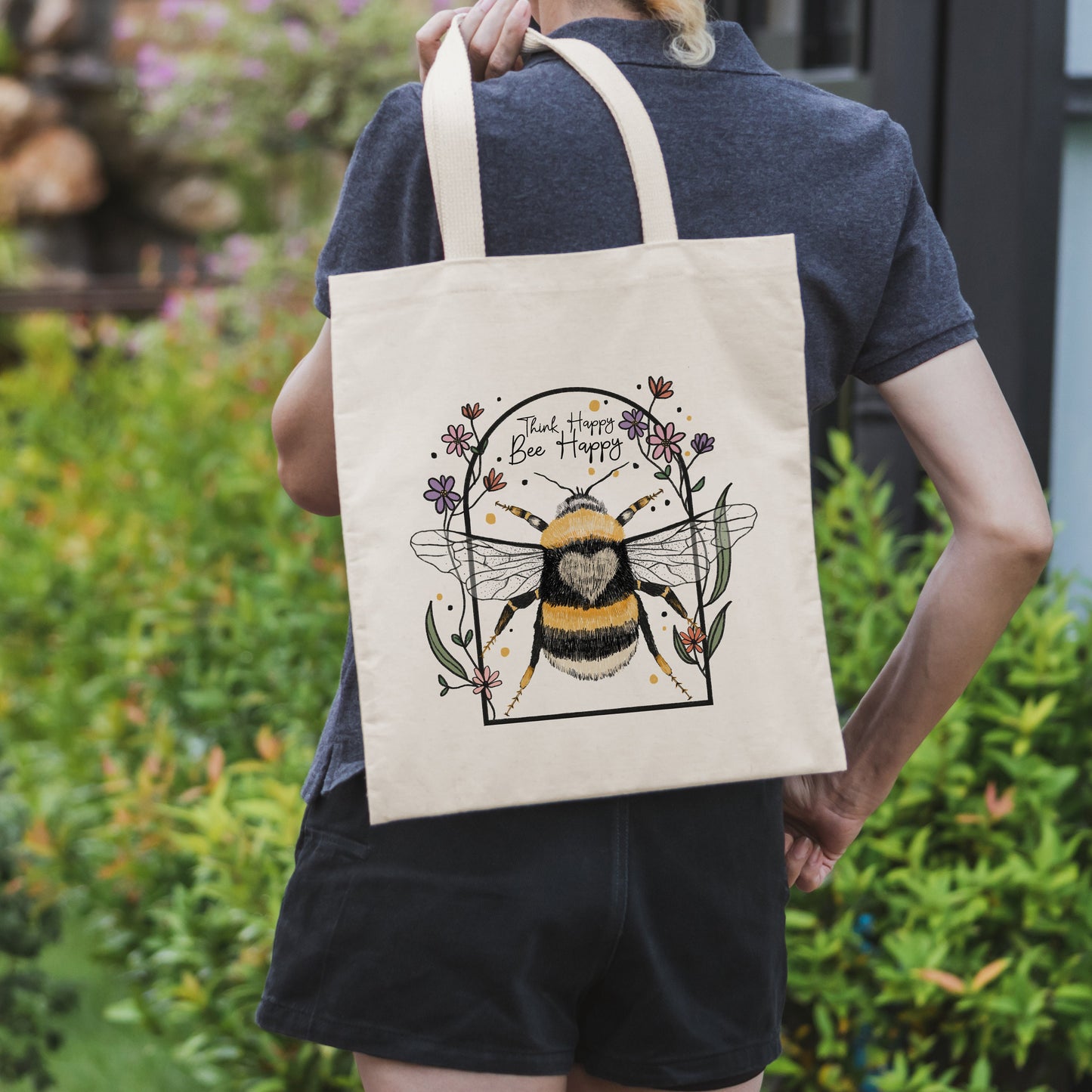 Think Happy Bee Kind Tote Bag