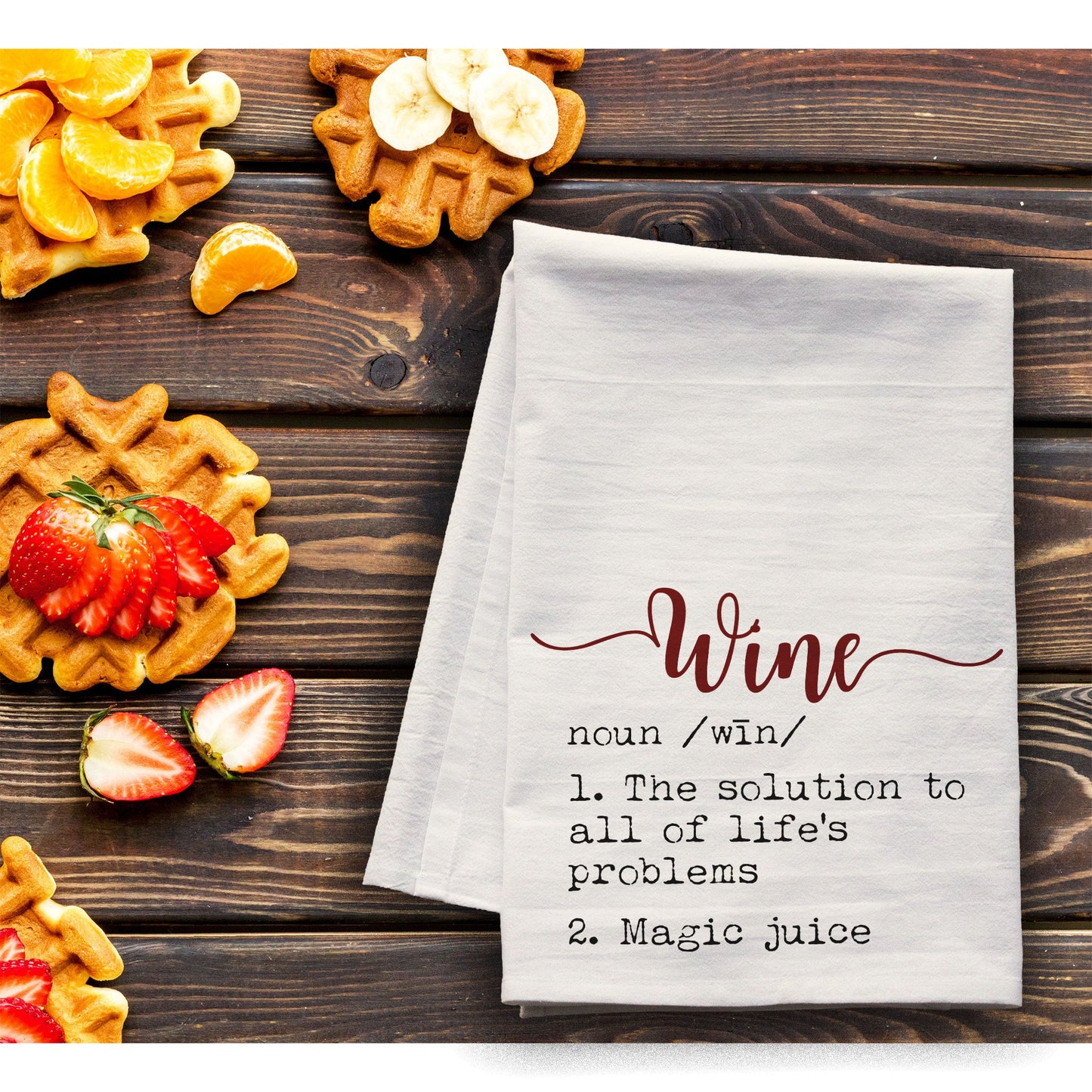 Let everyone know the true definition of wine with this hilarious kitchen or bar tea towel!